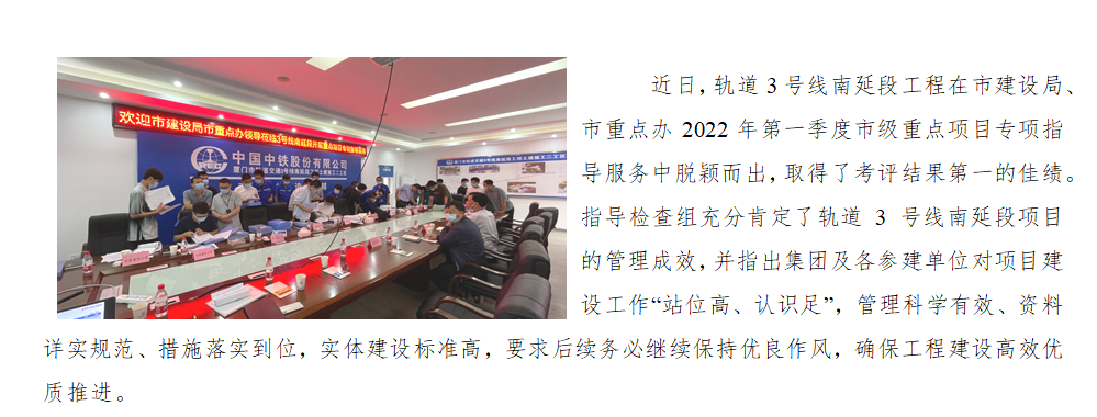 地铁3号线南延段工程获考评第一名佳绩