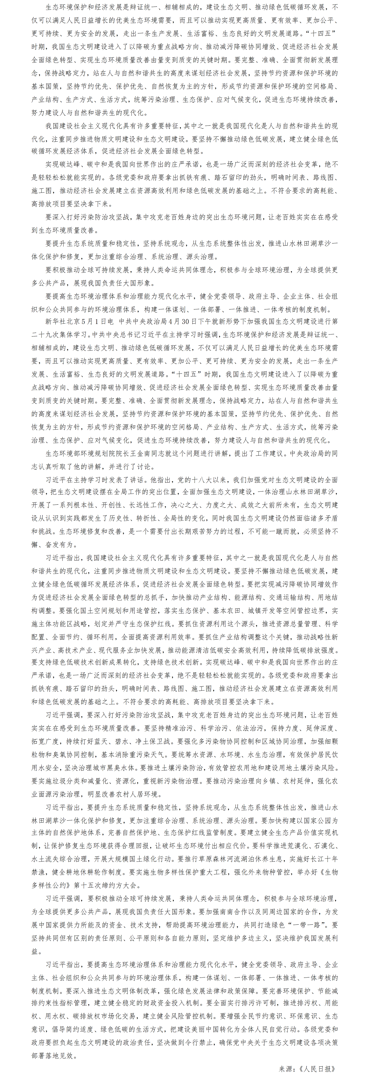 习近平强调:保持生态文明建设战略定力,努力建设人与自然和谐共生的现代化