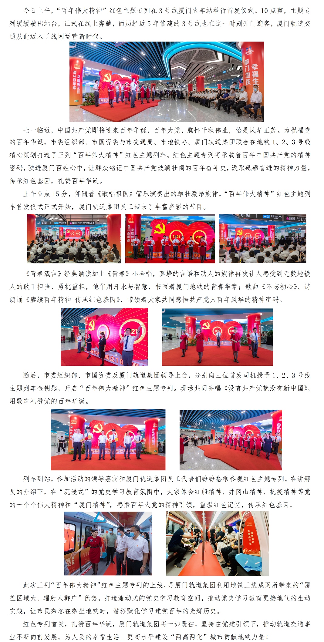 “百年伟大精神”红色主题专列首发仪式,传递出厦门地铁人对党的真挚祝福