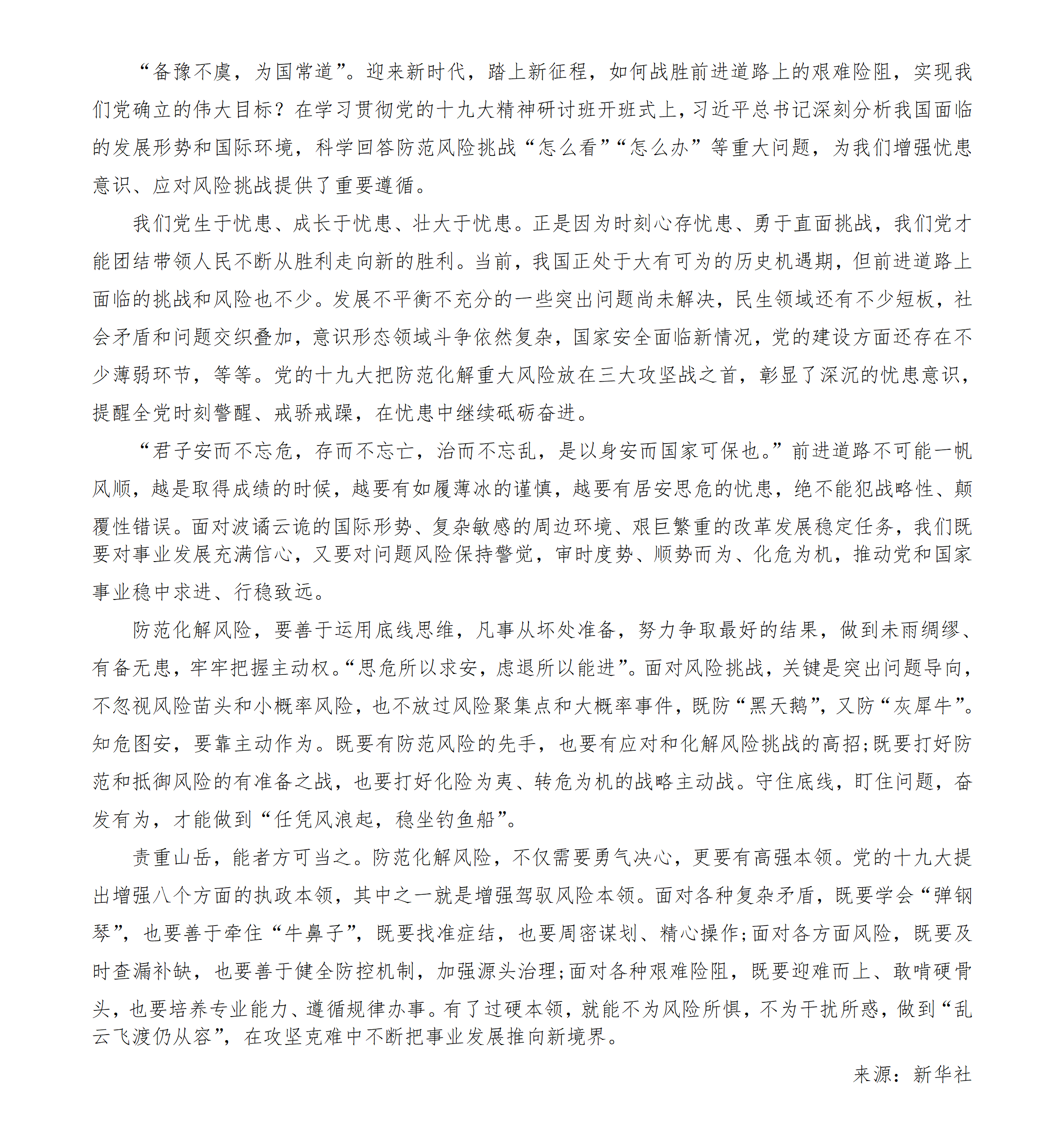 增强忧患意识 防范风险挑战——三论习近平总书记在学习贯彻党的十九大精神研讨班重要讲话