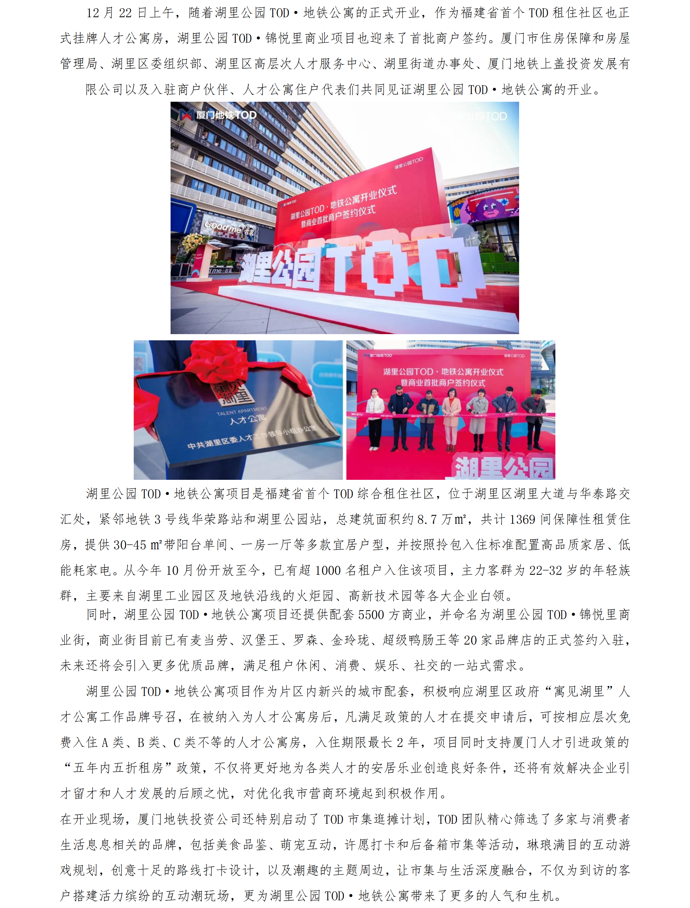 上新!厦门地铁TOD首个租住社区挂牌人才公寓,首批商户签约亮相市集活动