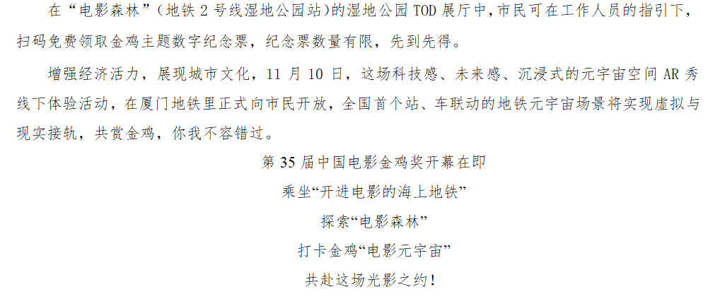 打卡“开进电影的海上地铁”,逛“电影森林”主题地铁站,感受厦门金鸡时刻
