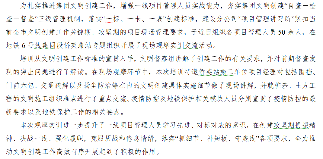 文明创建 现场实训提升管理水平,对标对表夯实创建机制