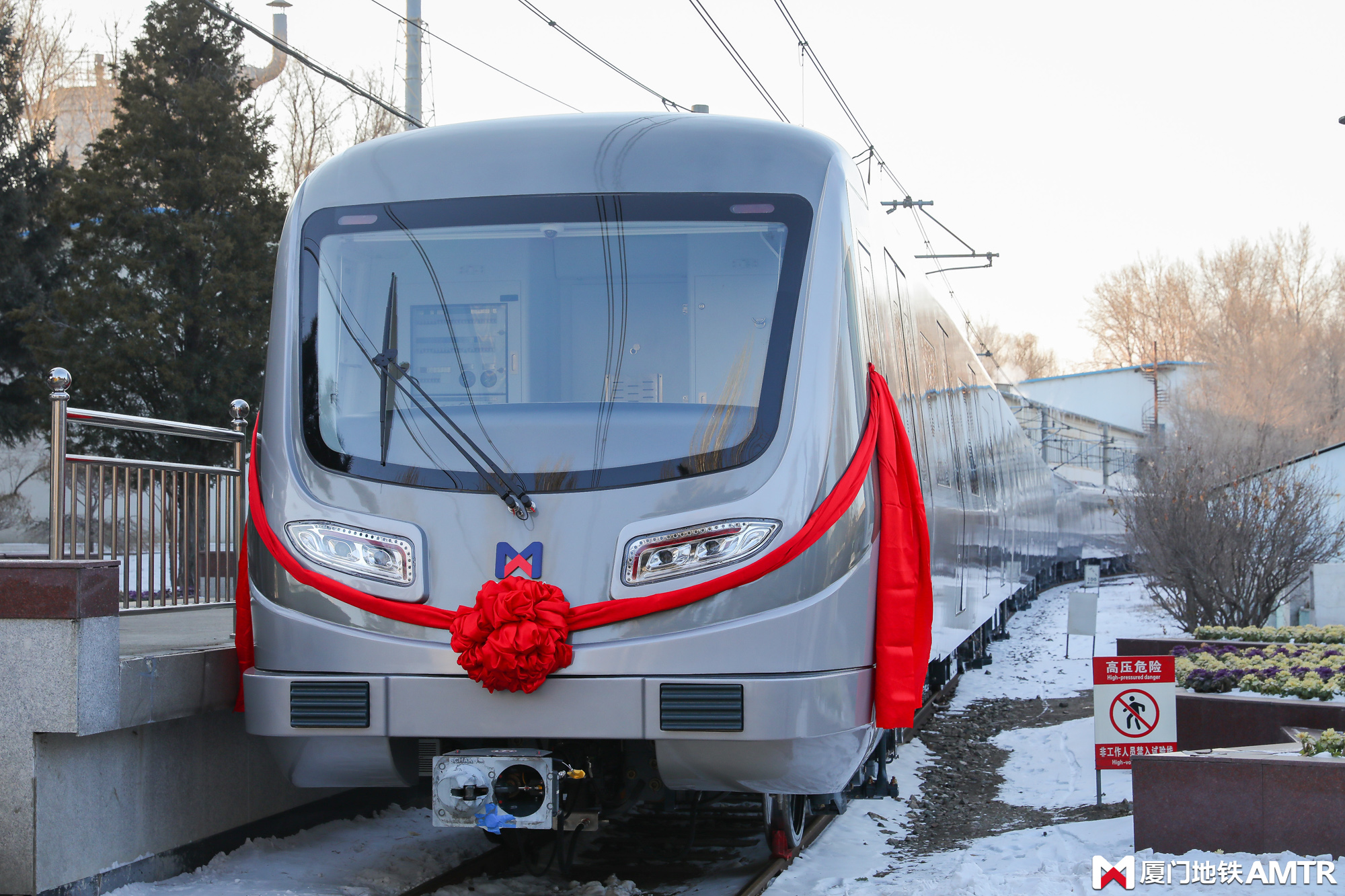 厦门地铁3号线初期配车43列,电客车采用B型铝合金鼓型车体,六辆编组(4动2拖),DC1500V接触网供电,最高运行速度可达80km/h,全列车设置244个座位,最高可载客2062人。