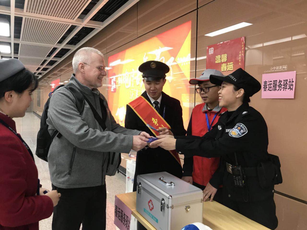2018年春运期间,厦门北站与平安志愿者服务队设立了春运服务驿站。应急的药箱、贴心细致的问询服务、无微不至的关怀让匆匆的旅客多了一丝安心。