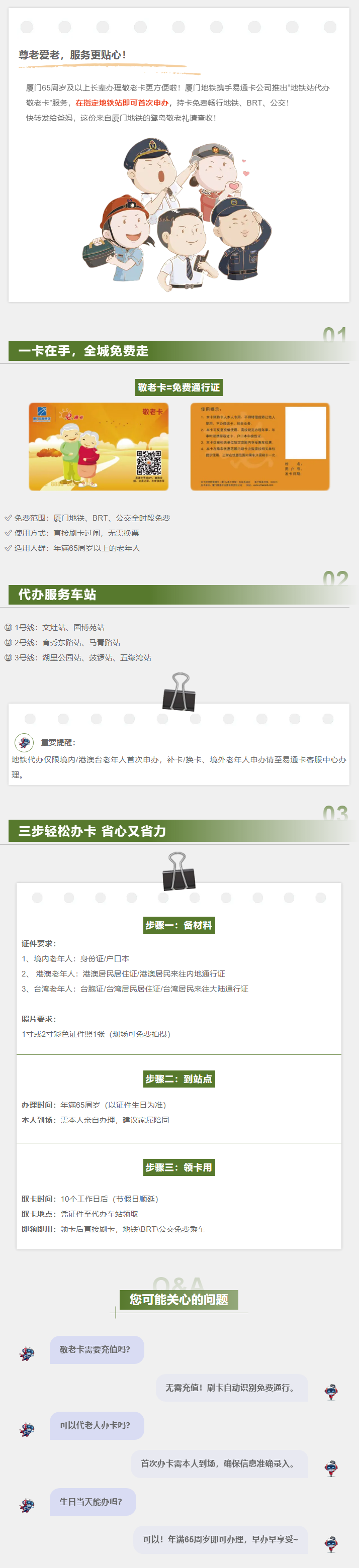 厦门地铁代办敬老卡!一卡免费坐地铁+BRT+公交,这些地铁站就能办!