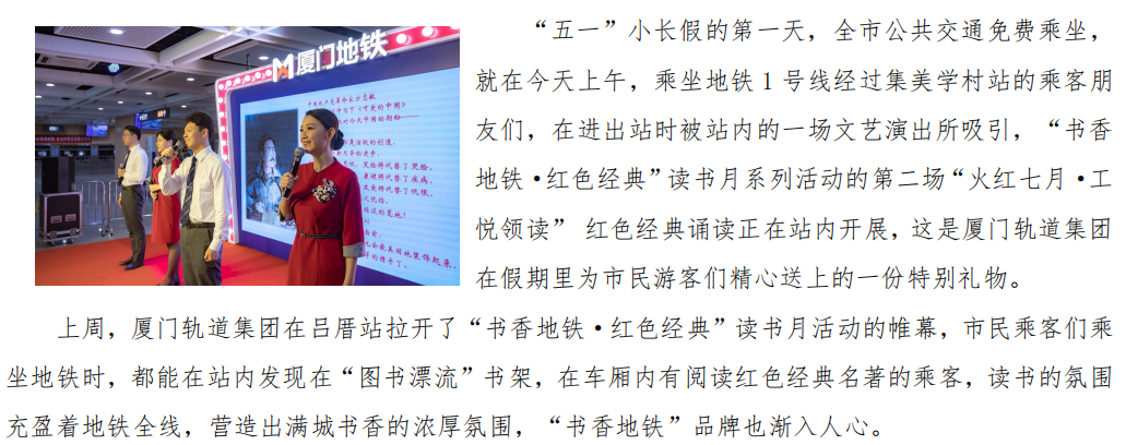 【书香地铁·红色经典】集美学村站内飘出的诵读声,是工悦领读者的深情表达