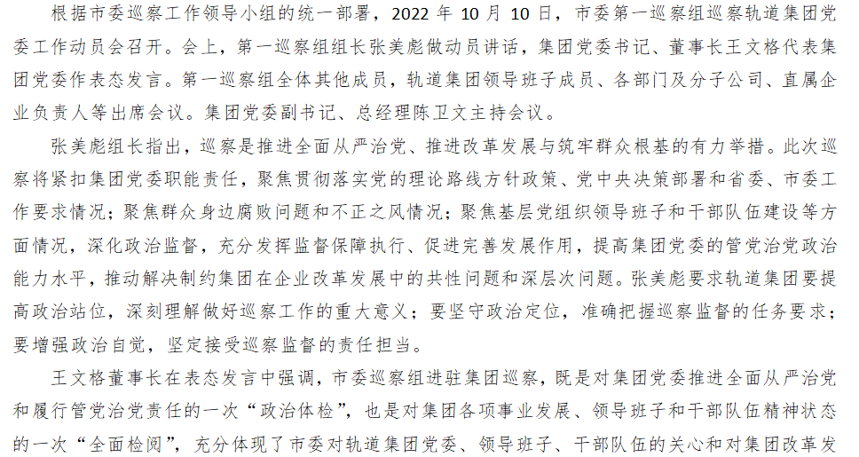 市委第一巡察组巡察轨道集团党委工作动员会召开