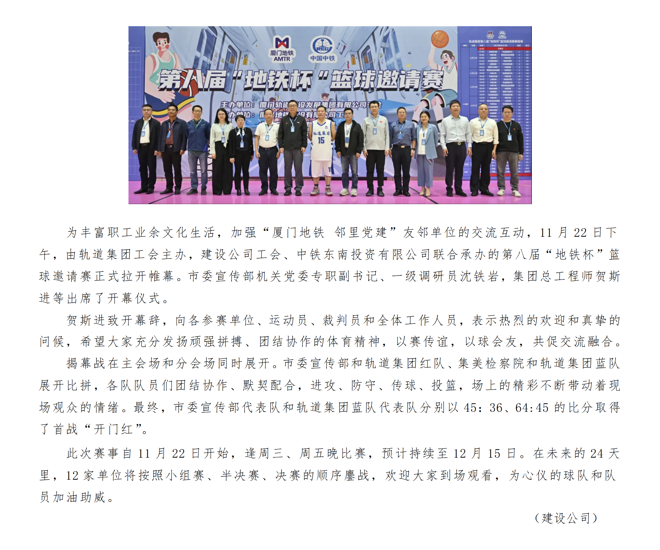 轨道集团第八届“地铁杯”篮球邀请赛正式开幕