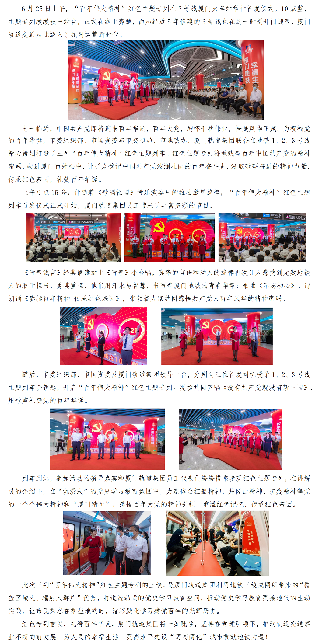 “百年伟大精神”红色主题专列首发仪式,传递出厦门地铁人对党的真挚祝福