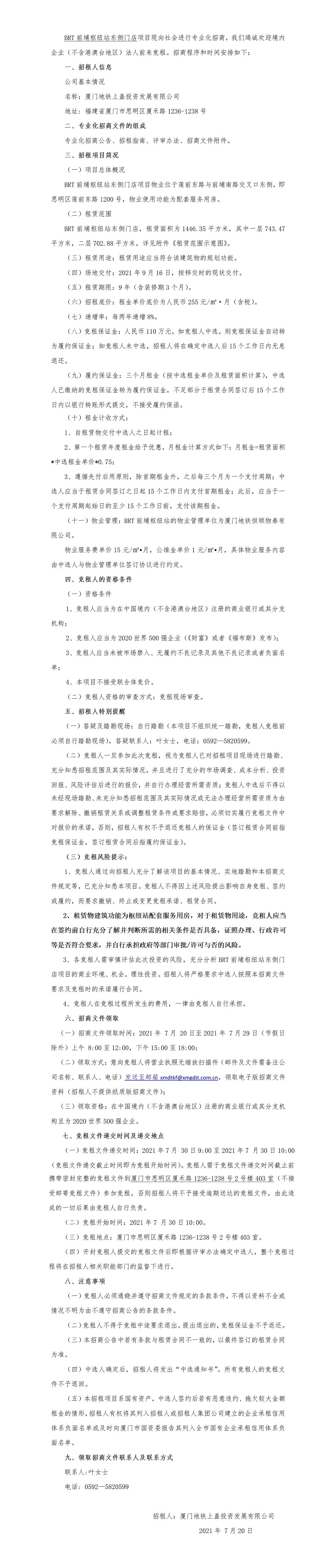 BRT前埔枢纽站东侧门店项目专业化招商公告