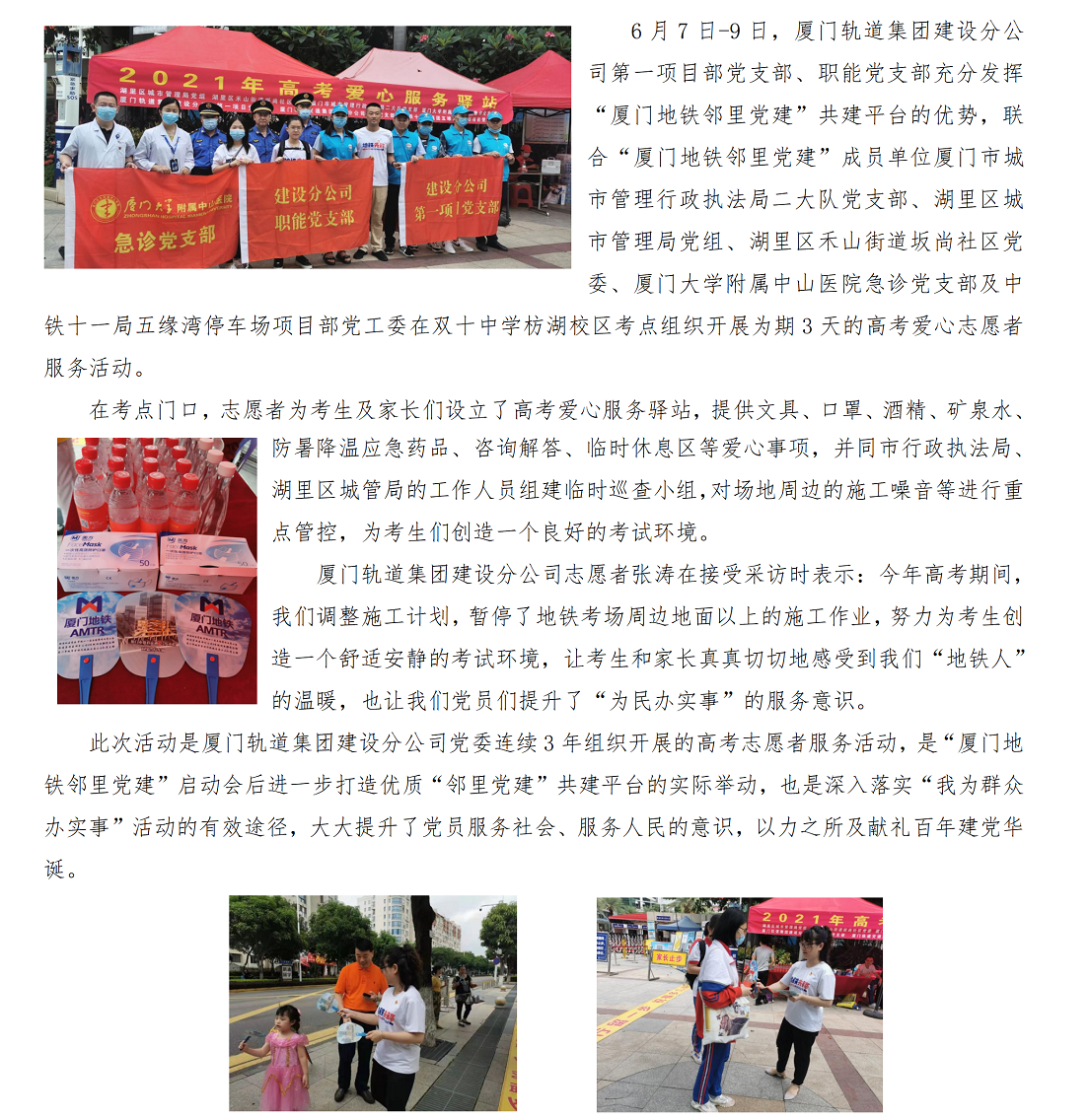 “邻里”志愿服务 暖心助力高考——厦门轨道集团建设分公司联合组织开展高考志愿者服务
