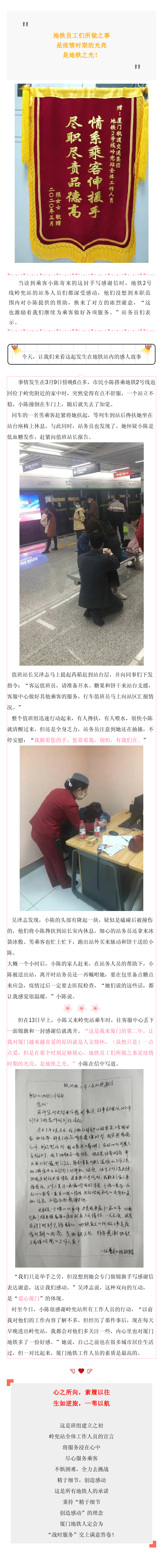送锦旗写感谢信,“爱心厦门”在地铁里闪耀