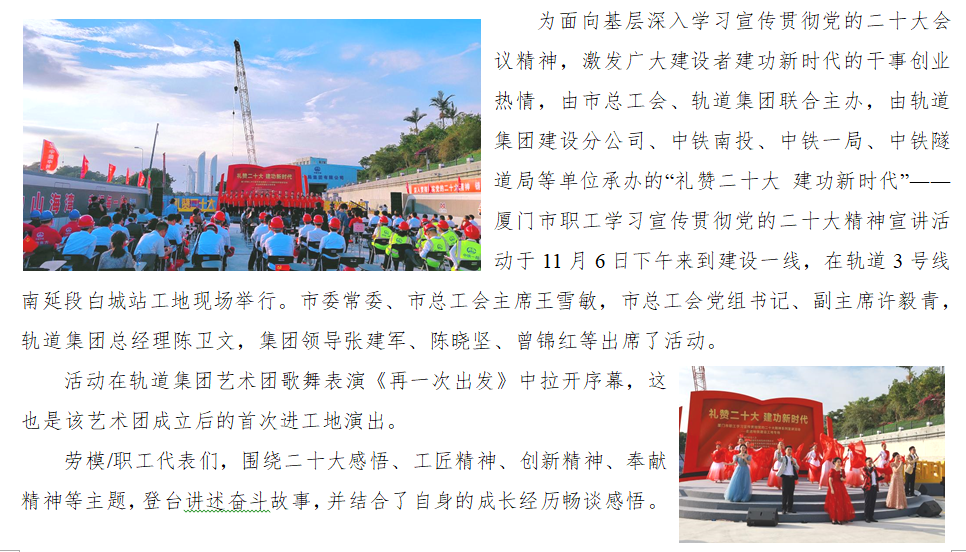 礼赞二十大 建功新时代――全市职工学习宣传贯彻党的二十大精神宣讲活动走进地铁工地