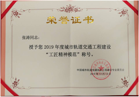 近日,2019年中国城市轨道交通协会工程建设专业委员会主办的年会暨市域快轨研讨会在无锡市成功召开。 大会举行了授奖表彰仪式,厦门轨道集团建设分公司轨道工程师张涛荣获2019年度“工匠精神模范”称号。此次评选表彰旨在培育、弘扬精益求精的工匠精神,发挥优秀技能人才的创新引领作用,助力中国城市轨道交通发展。