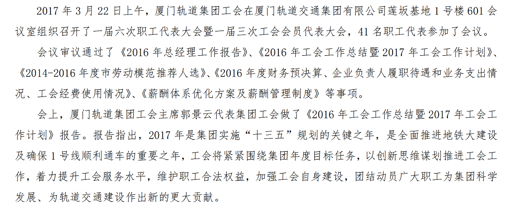 厦门轨道集团工会组织召开一届六次职工代表大会暨一届三次会员代表大会