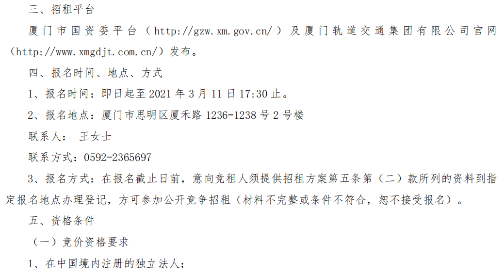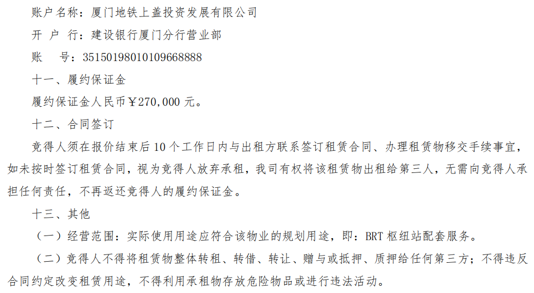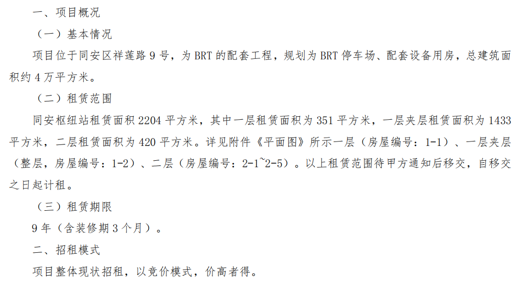BRT同安枢纽站公开招租方案