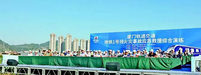 地铁作为重要的出行工具,已与市民生活密不可分,安全运营尤为重要。昨日的演练由厦门市安委办和轨道运营应急办联合主办,厦门市交通运输局、市安监局、消防支队和轨道交通集团有限公司等单位具体承办,省安监局、省交通运输厅和省消防总队领导莅临现场观摩指导,有21个部门和单位的291人、27辆救援车辆参演,市领导、市安委会各成员单位、各参演单位及未参演队伍骨干120人到场观摩,是今年厦门地区最大规模的地铁火灾事故应急综合演练。