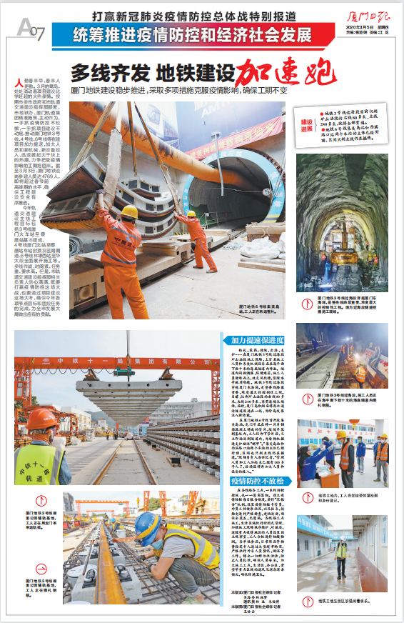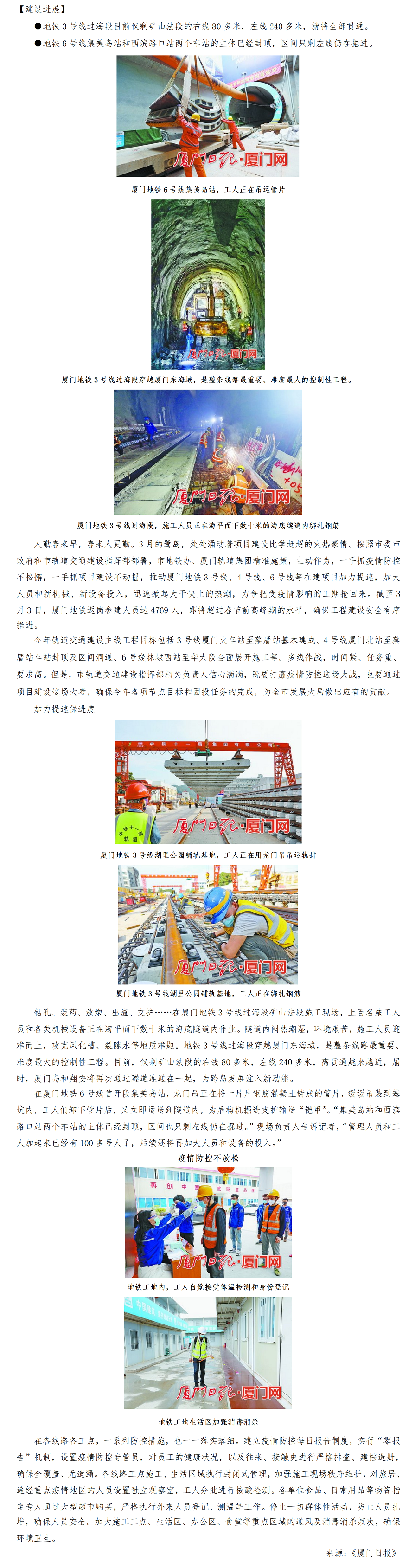 【厦门日报】:厦门地铁建设稳步推进,采取多项措施克服疫情影响,确保工期不变