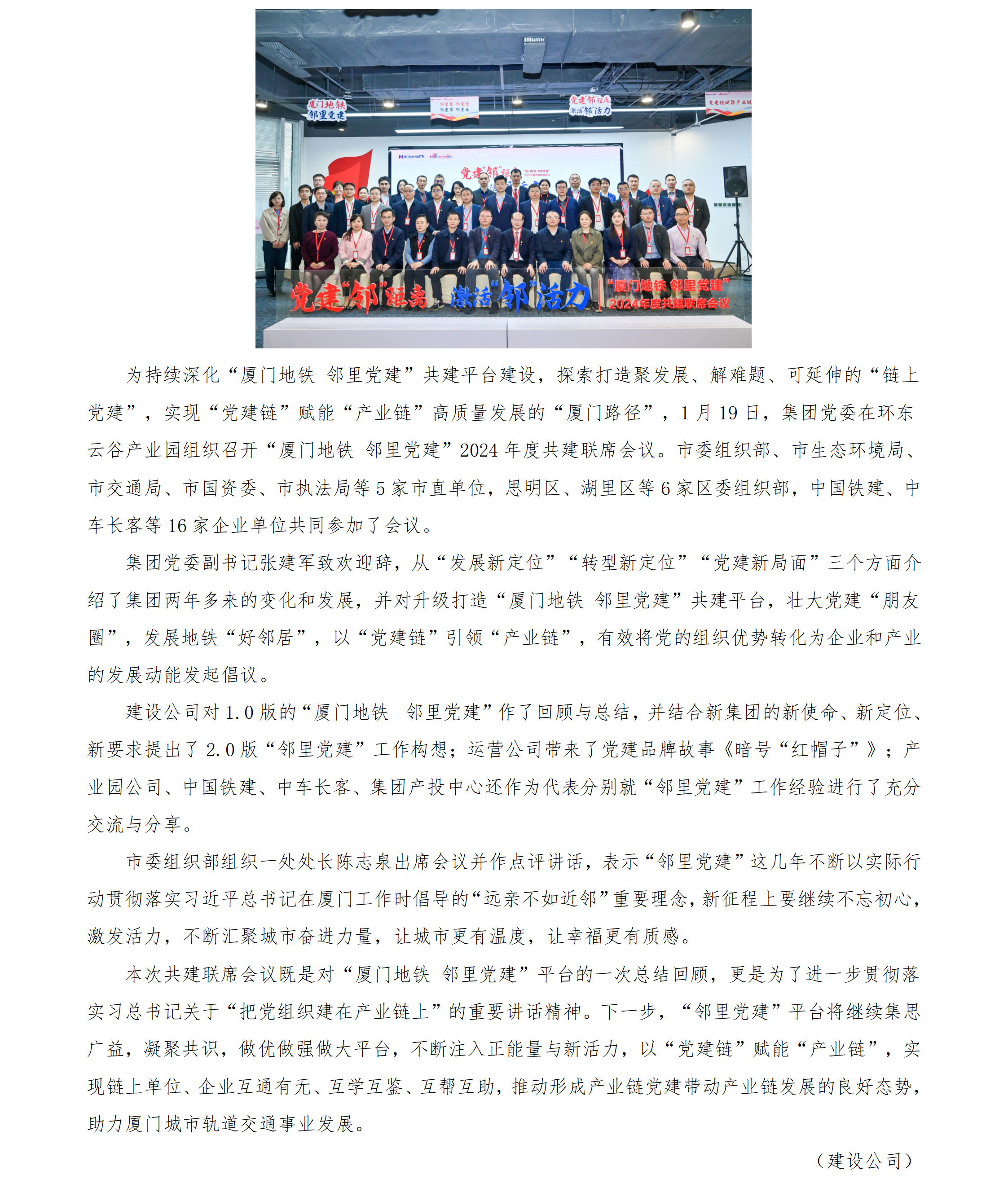 党建“邻”距离,激活“邻”活力,轨道集团党委召开“厦门地铁 邻里党建”2024年度共建联席会