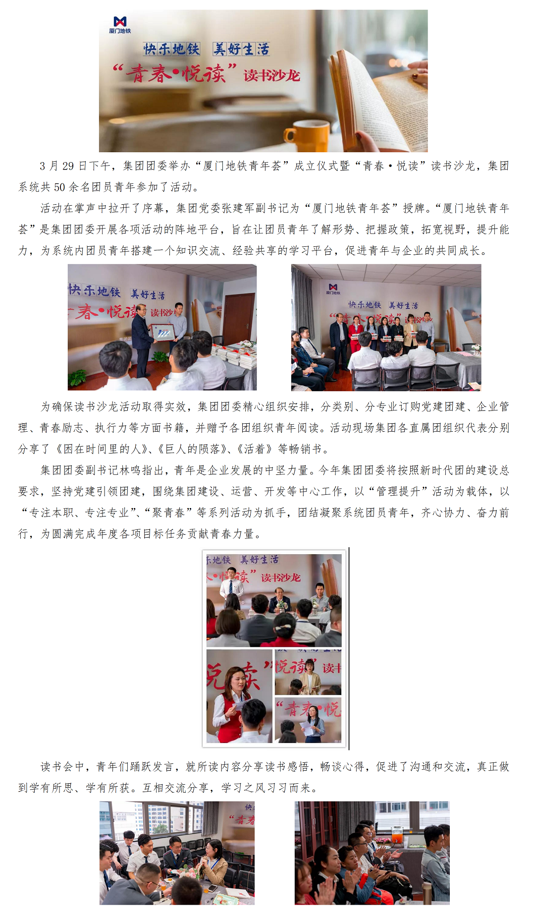 厦门轨道集团团委举办“青春•悦读”读书沙龙活动