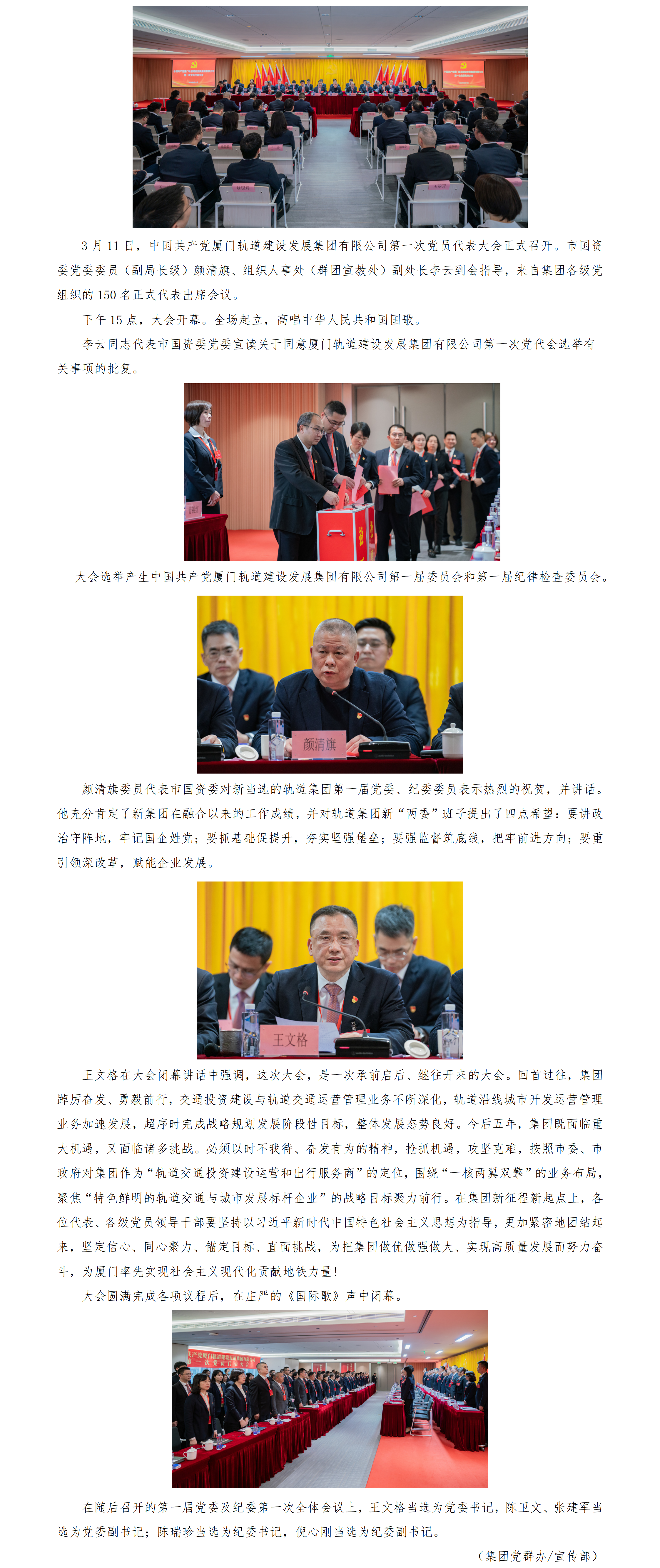 中国共产党厦门轨道建设发展集团有限公司第一次党员代表大会胜利召开