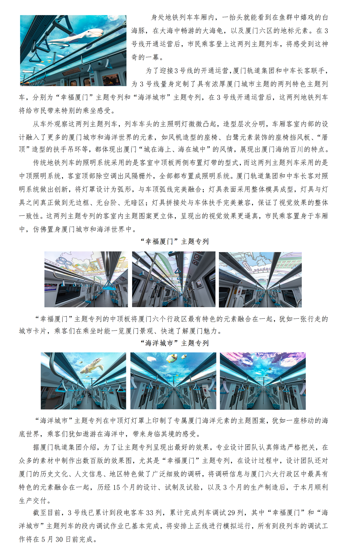 厦门地铁3号线“幸福厦门”“海洋城市”主题专列亮相