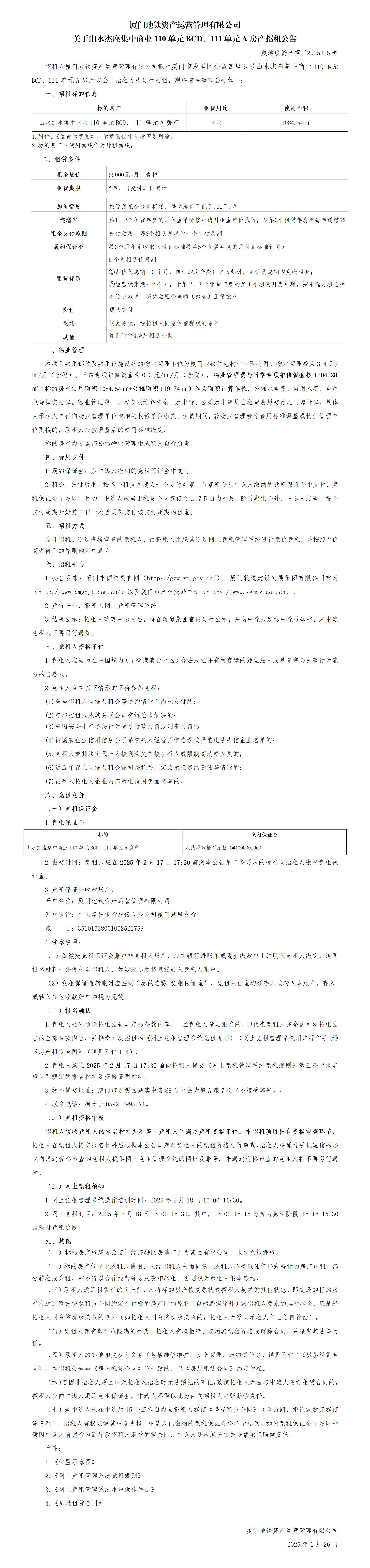 关于山水杰座集中商业110单元BCD、111单元A房产招租公告