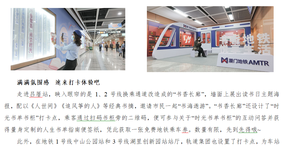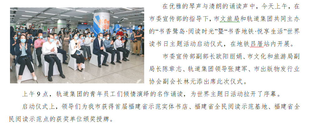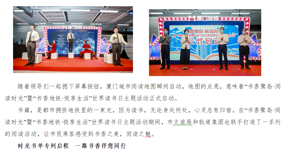 “书香鹭岛·阅读时光”暨“书香地铁·悦享生活”世界读书日主题活动今日启动