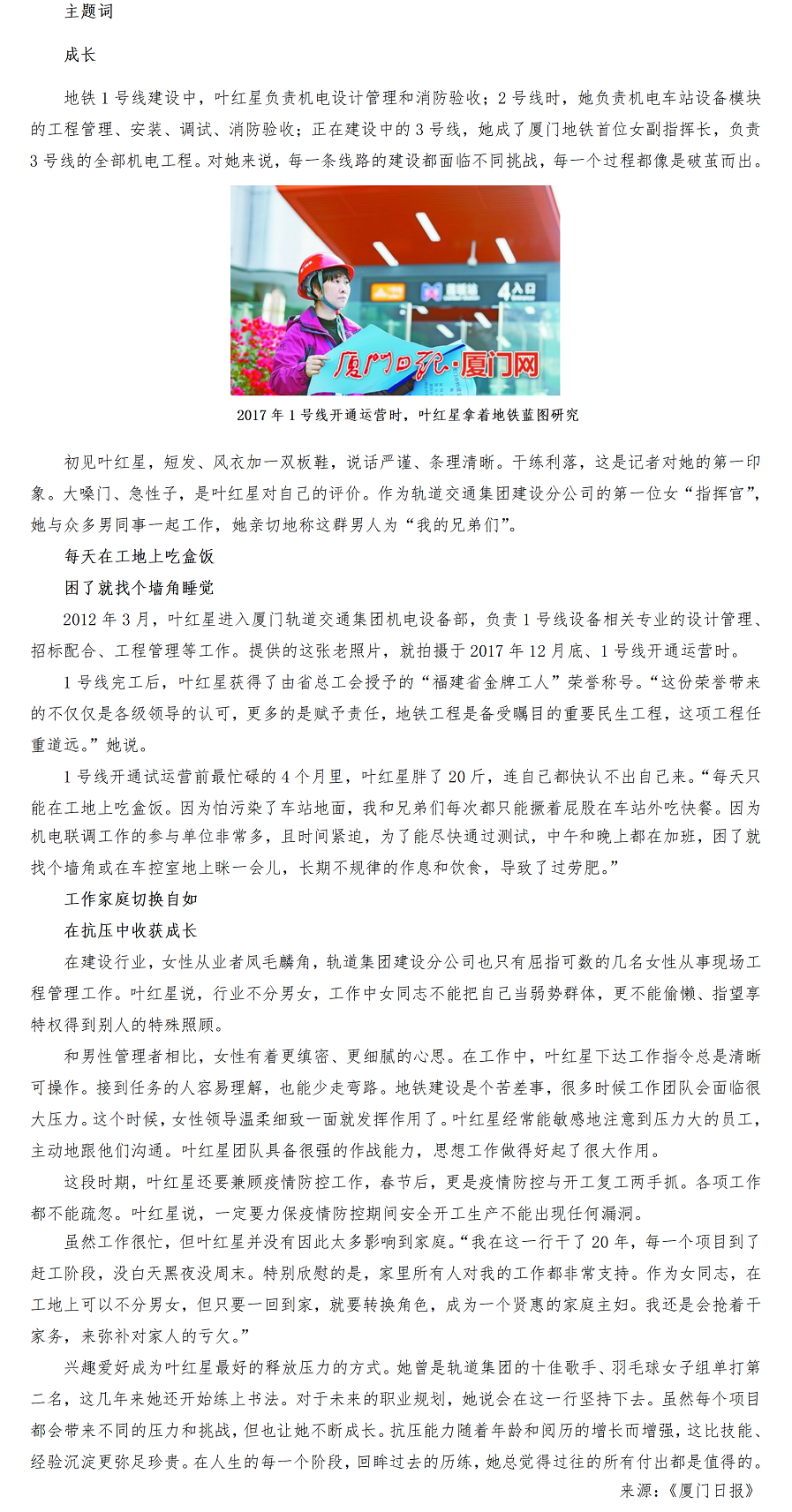 【厦门日报】:厦门地铁首位女“指挥官”:从1号线到3号线她一路参与建设