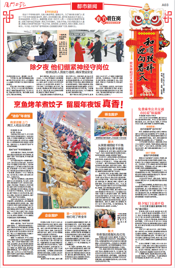 【厦门日报】:除夕夜他们绷紧神经守岗位,地铁站务人员接力值班,确保营运安全