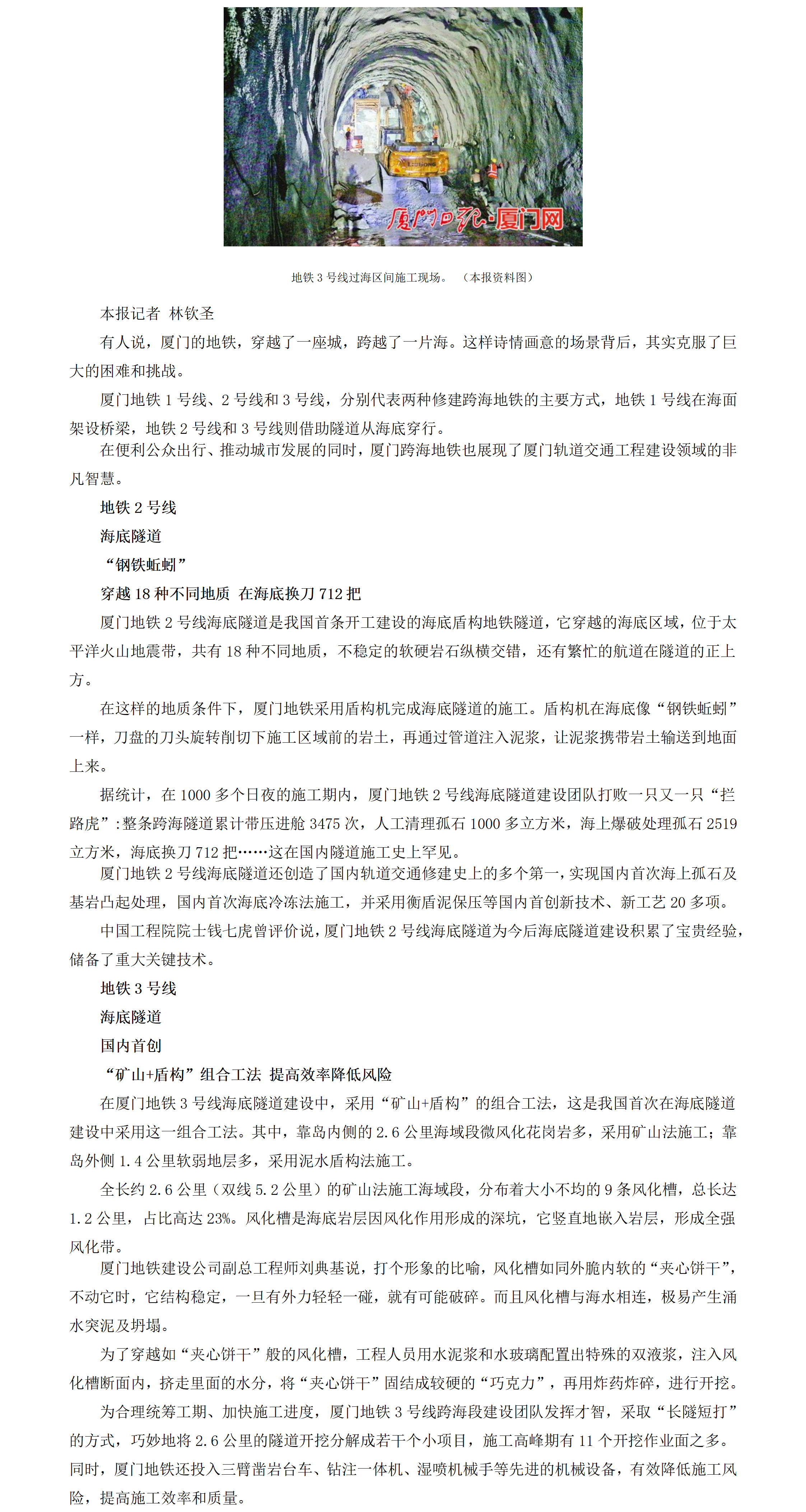 【厦门日报】厦门地铁海底穿行的建设智慧