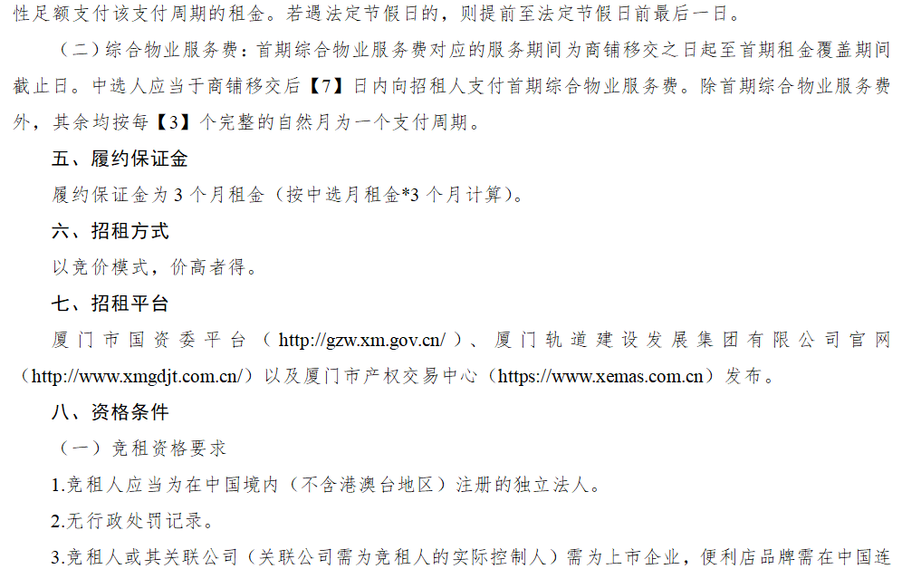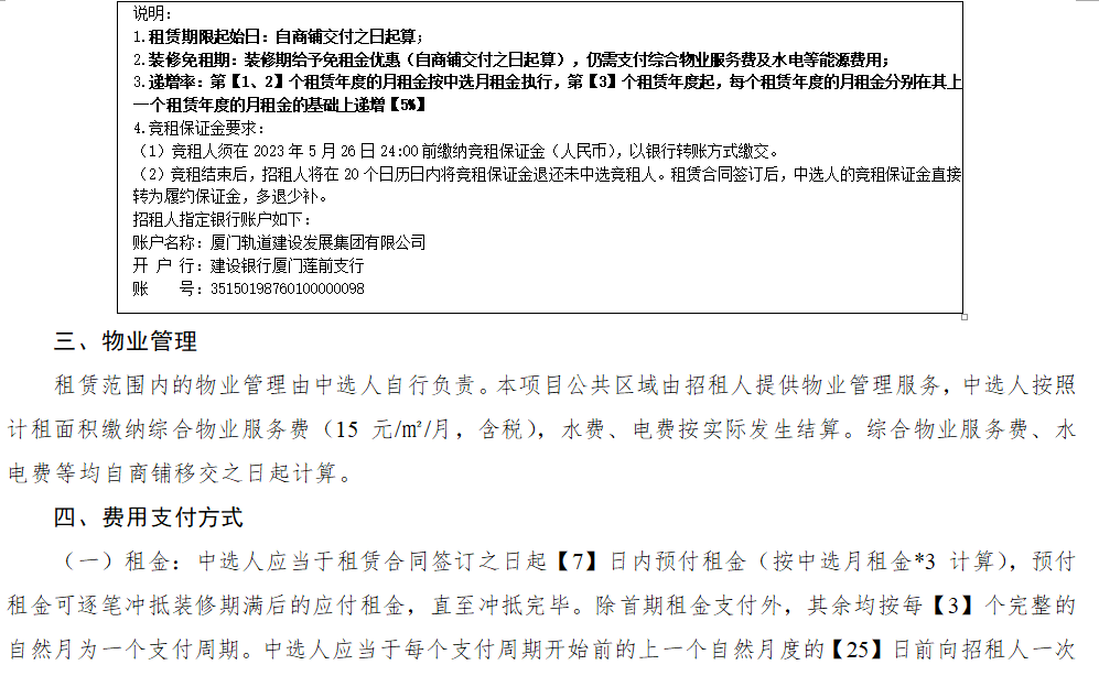 厦门轨道交通董任北项目第三批商铺公开招租方案(标的3二次招商)