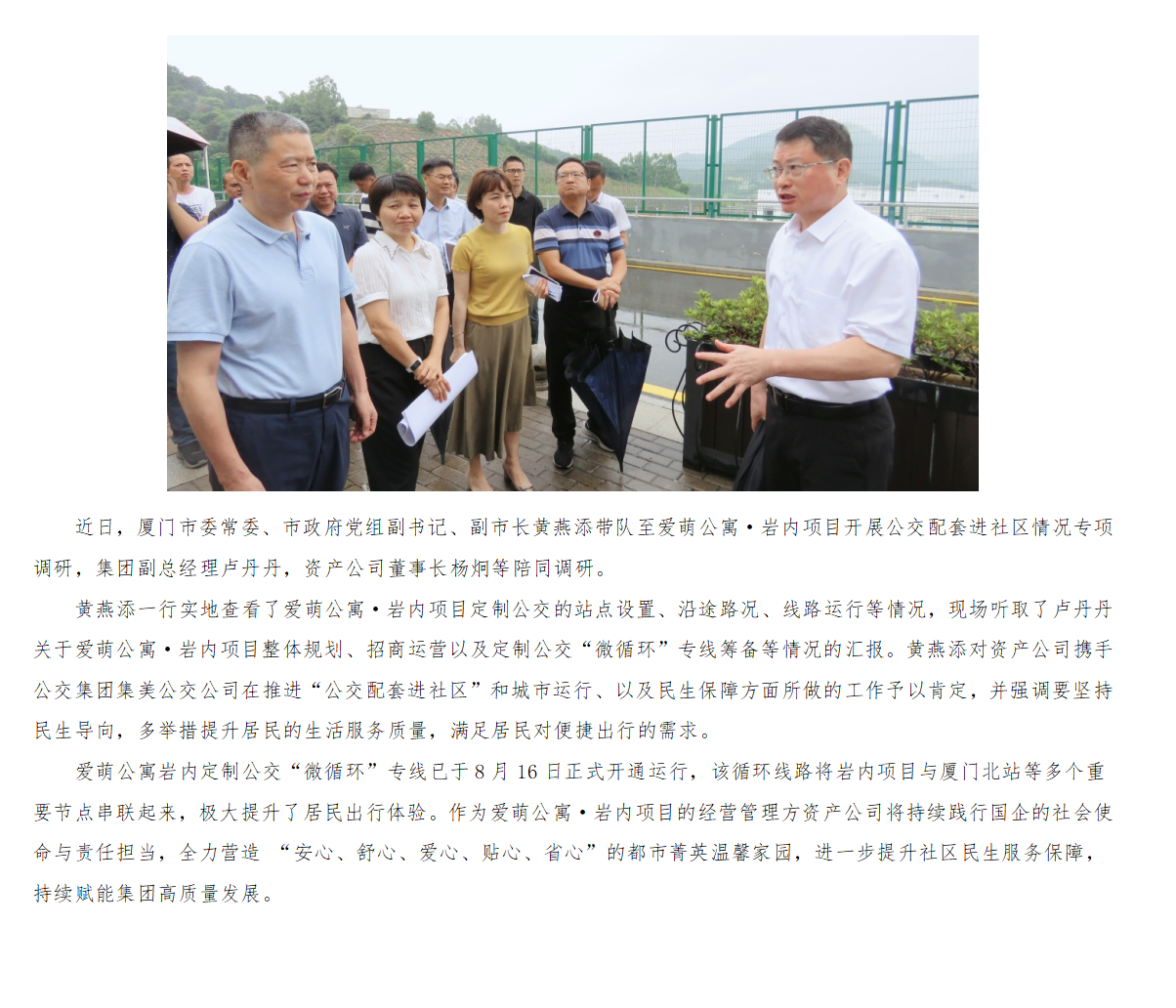 厦门市领导调研爱萌公寓·岩内项目定制公交配套情况