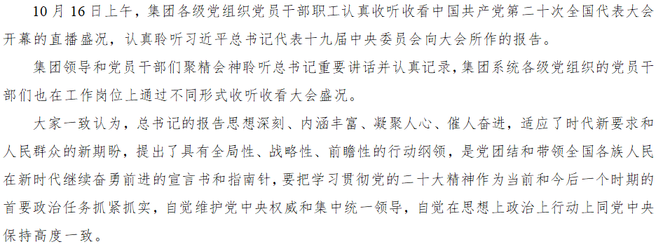 集团各级党组织收听收看党的二十大开幕式盛况