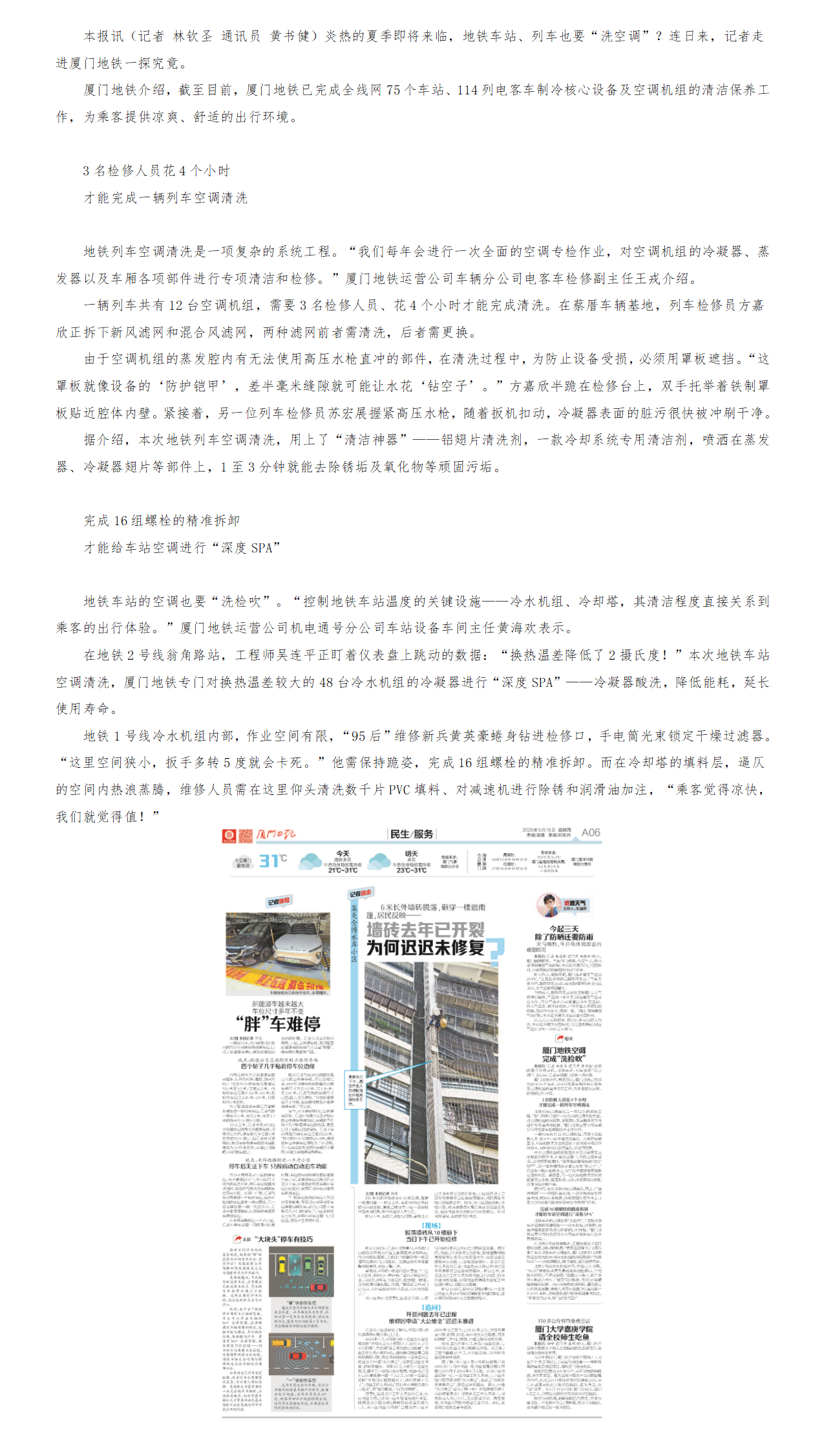【厦门日报】厦门地铁空调完成“洗检吹”