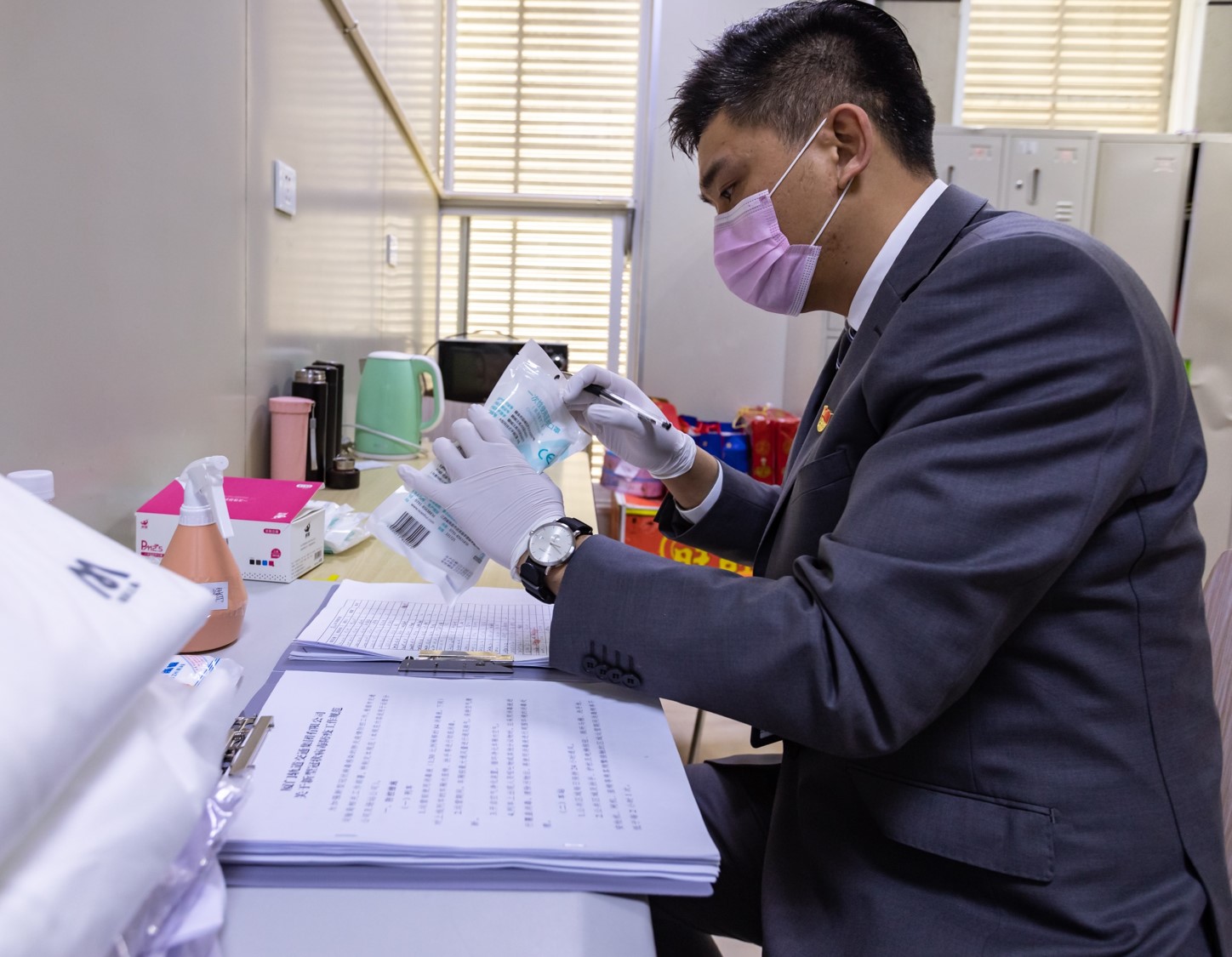 集美线是所有BRT线路中客流压力最大的一条线路,疫情来袭,林毅主动请缨在车站坚守,分配防疫物资、排查员工健康情况、加强防疫宣导、检查员工防疫预案掌握情况。
