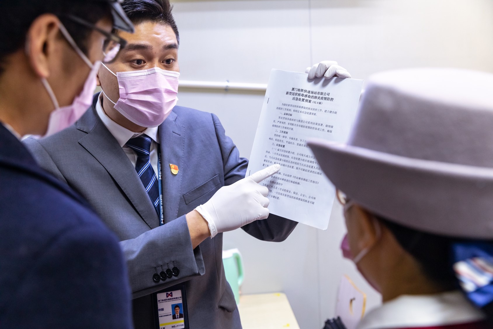 为确保站点员工熟练掌握应急处置流程及岗位职责,林毅深入各个站点,逐个抽查每位在岗员工的防疫应急预案学习掌握情况,并在现场亲自模拟疫情患者,指导车站值班长根据预案内容组织现场人员分工协作,做好患者的就医及情况报送工作,提高站点人员对疫情突发事件的处置能力。他说,这不仅是保证自身的健康安全,也是一种对乘客负责的态度。