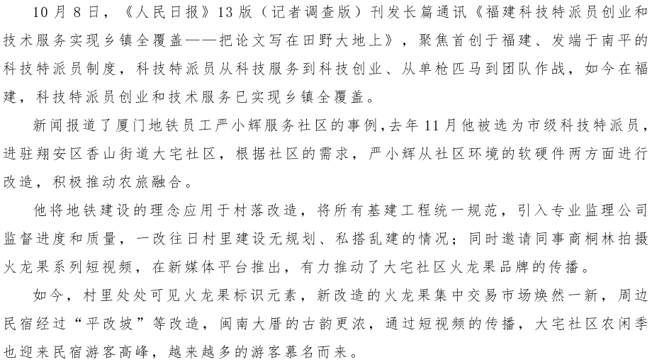 【人民日报】:《人民日报》报道我司科技特派员严小辉科技助农事迹