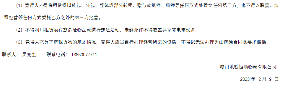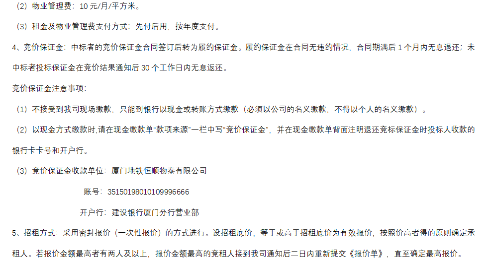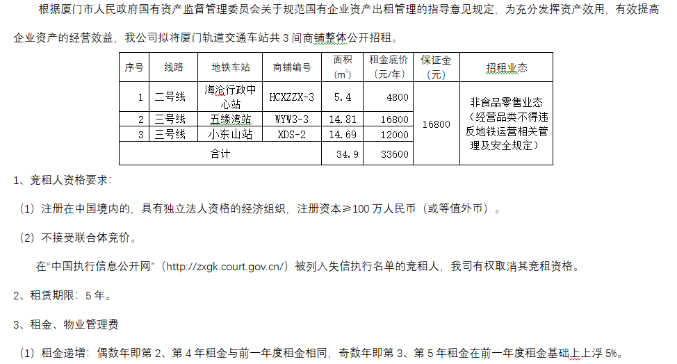 厦门轨道交通车站共3间商铺整体公开招租公告