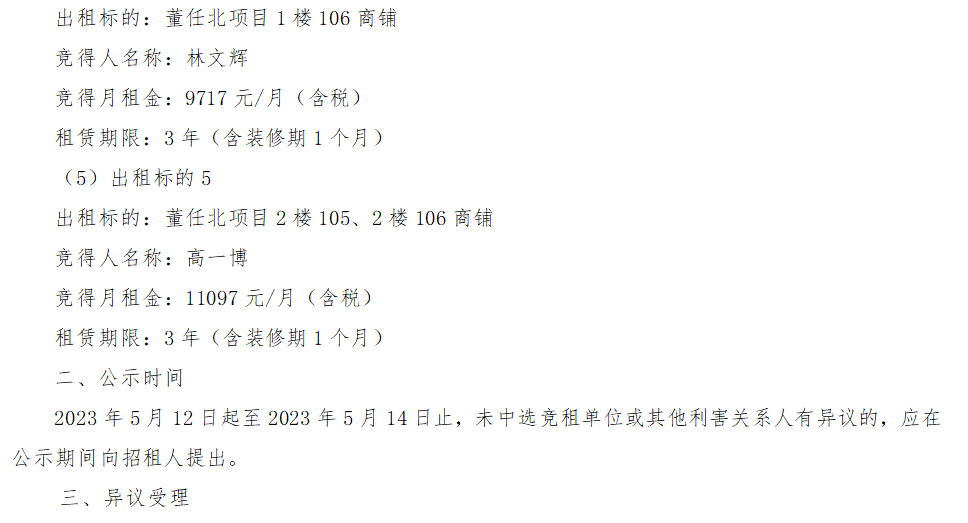 厦门轨道交通董任北项目第三批商铺公开招租结果公示