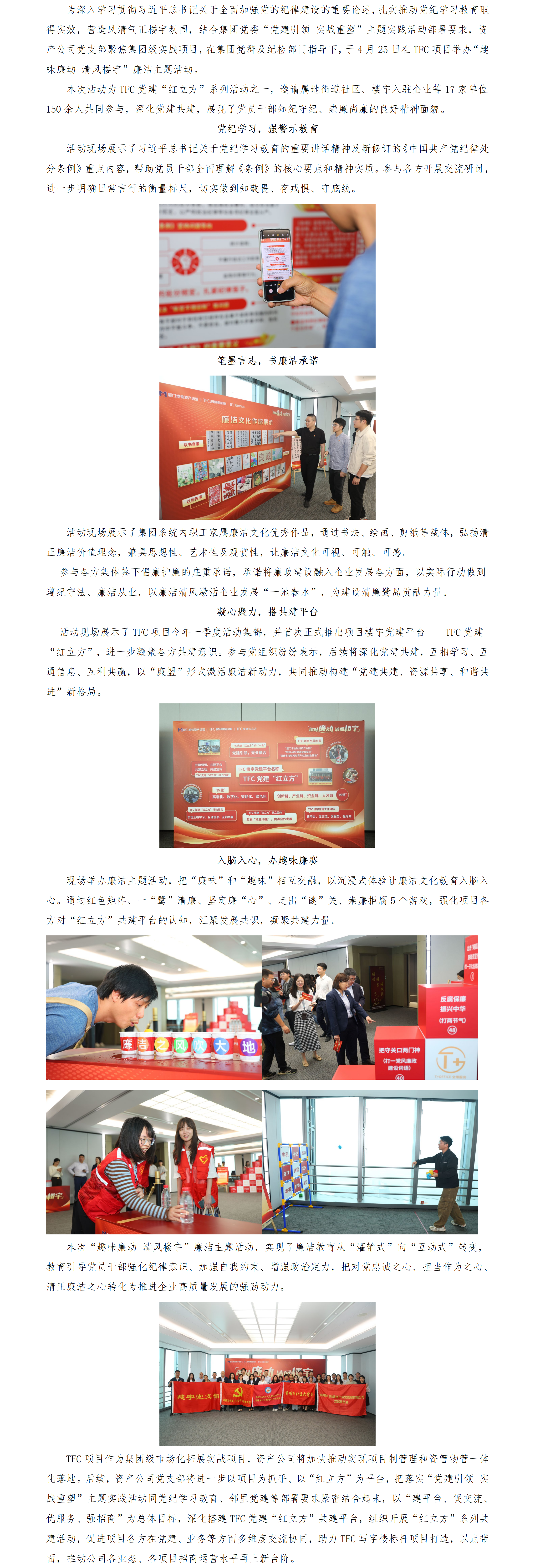 党纪学习教育动态 | TFC项目举办“趣味廉动 清风楼宇”廉洁主题活动