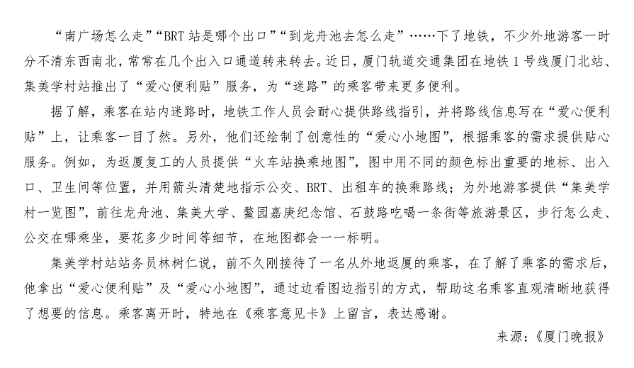 【厦门晚报】:地铁1号线新增爱心便利贴服务