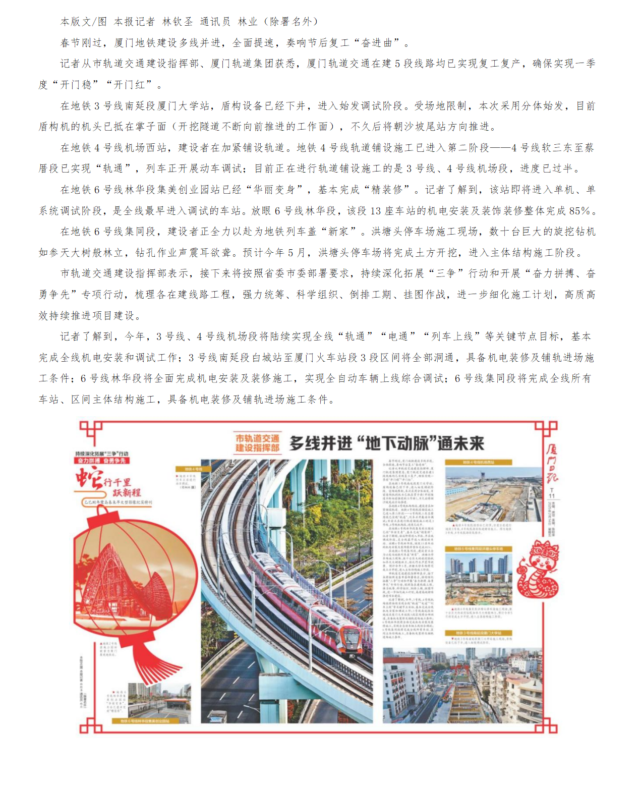 【厦门日报】市轨道交通建设指挥部:多线并进“地下动脉”通未来