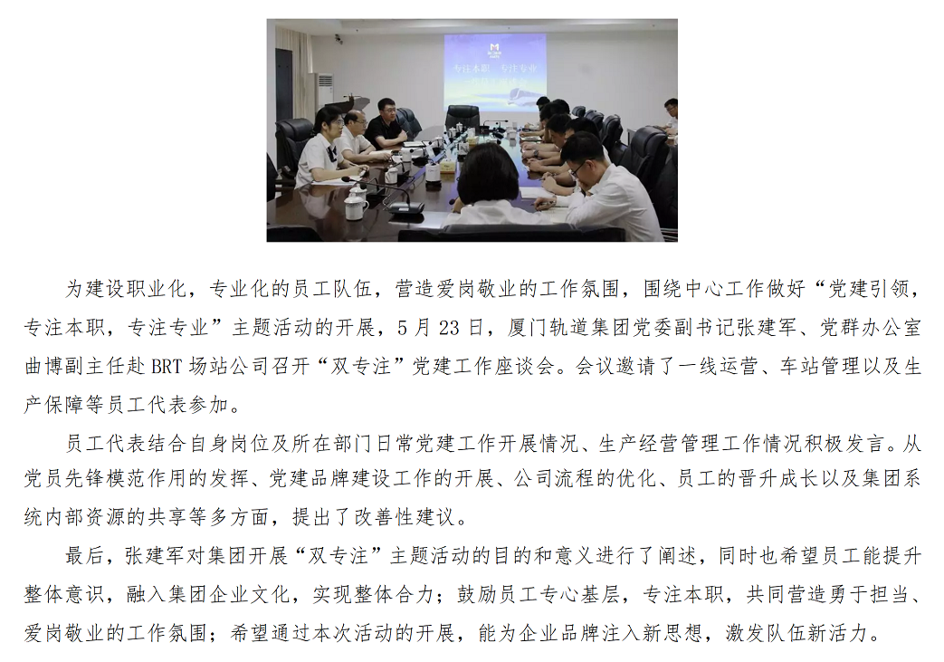 深入一线调研党建座谈交流,促进提升 “双专注”党建工作座谈会在BRT场站公司召开