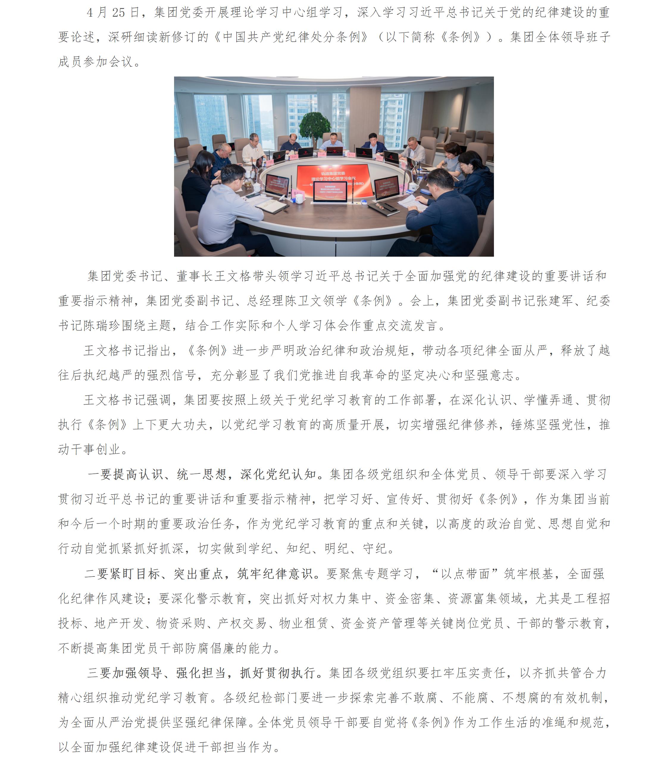 集团党委召开理论学习中心组集体学习《中国共产党纪律处分条例》