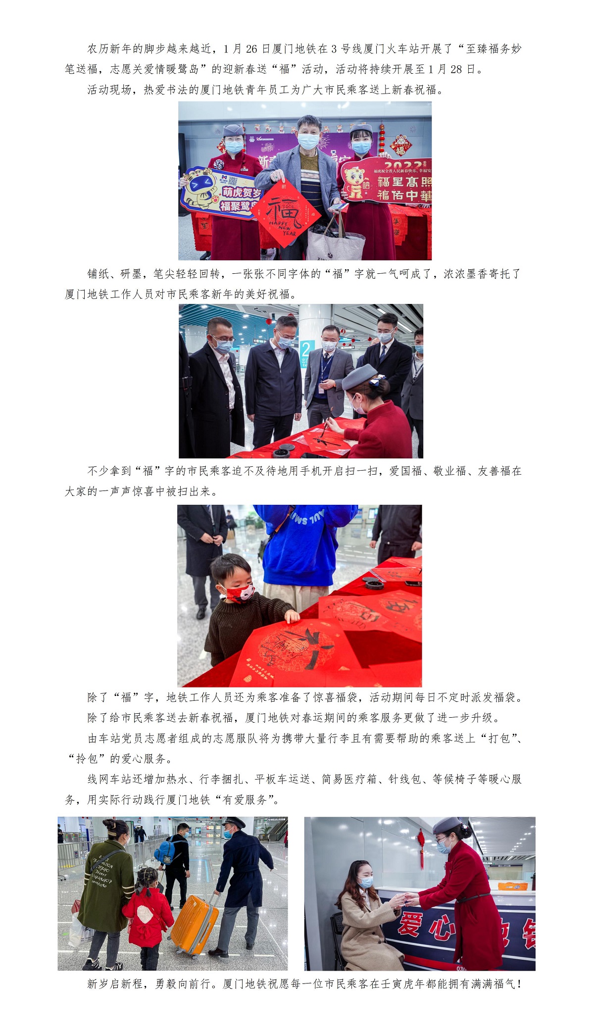 写“福”字 ,送福袋,就在厦门地铁3号线火车站内