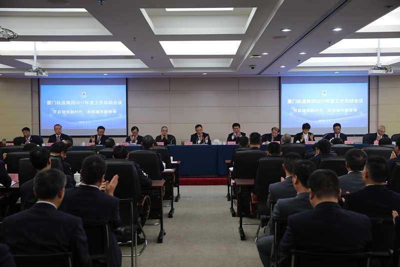 随后,集团公司程正明总经理代表集团领导班子作题为《开启地铁新时代 承担城市新使命》的工作报告。2017年,集团公司以“保安全、保稳定、保开通”为主线,实行“一线工作法”,集团领导、中层干部包干到站,落实三级领导干部结对包站负责机制,攻坚克难,扎实推进地铁工程建设,超额完成地铁建设任务;地铁1号线克服与建设交叉施工、实操实训车站环境差、联合调试等不利因素,以岗位培训、应急预案演练等为中心,加快人才队伍建设,立足团队建设,以管理能力提升为导向,顺利实现5月1日开始试运行,8月20日开始跑图,9月30日实现三权移交,10月6日开展体验式运行等重要节点目标,1号线于2017年12月31日实现了高标准、高水平、全功能开通试运营,厦门迈入地铁新时代;2017年,集团公司全面推行质量安全标准化建设工作,强化质量安全管控,不断提升安全生产管理水平,安全生产形势总体平稳受控;2017年,地铁的综合开发规划、建设、用地、审批等政策及用地出让工作取得新突破。2018年,集团公司的主要任务:一是稳步推进地铁2、3、4、6建设,实现2号线洞通的目标,工程建设投资160亿元;二是确保运营安全,确保全年无一般以上事故,无责任乘客死亡,实现首个运营安全年;三是实现资源开发土地政策的突破,在招拍挂上有新的突破;四是聚焦安全生产,着力杜绝重特大事故,遏制较大事故,积极压降一般事故。