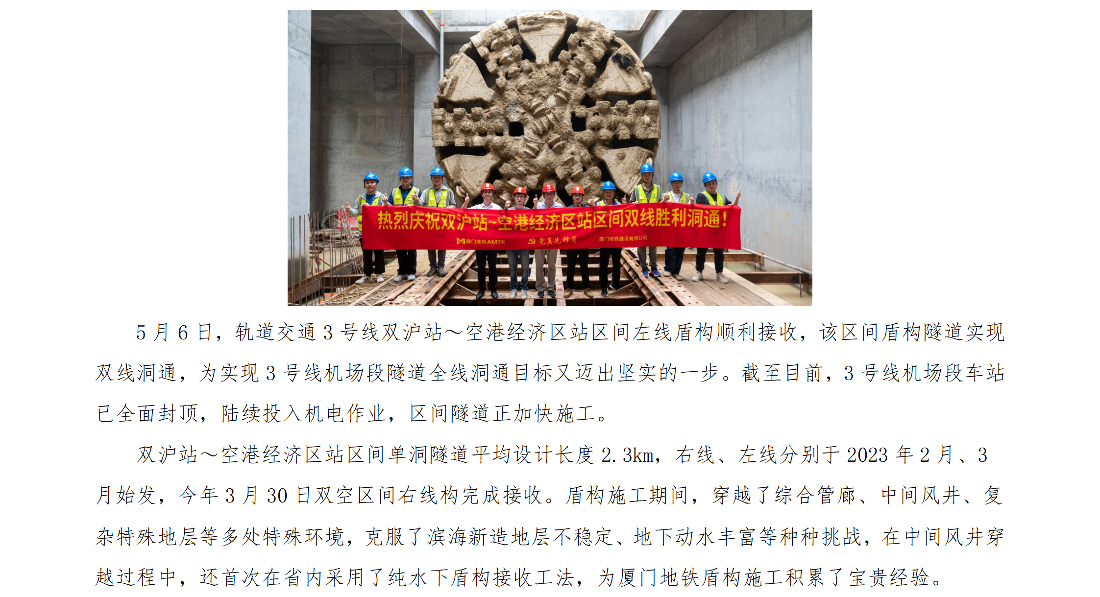 轨道3号线双沪站~空港经济区站区间双线洞通